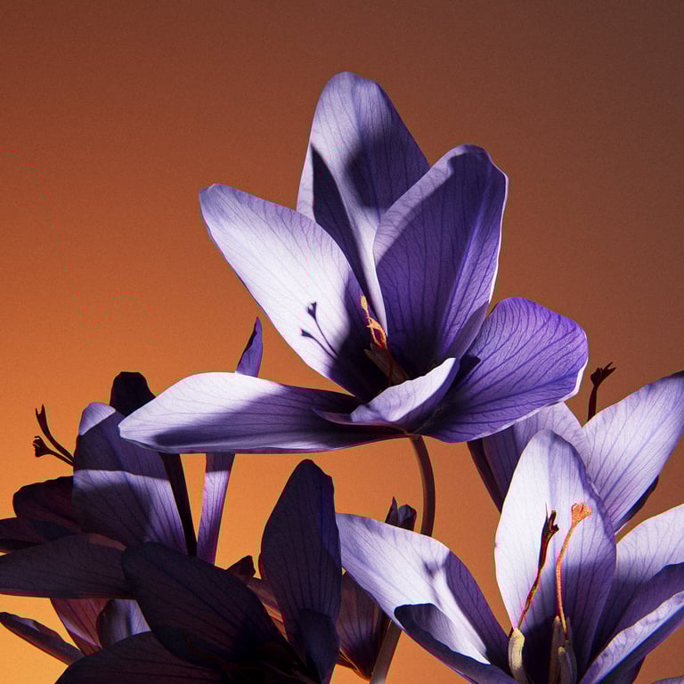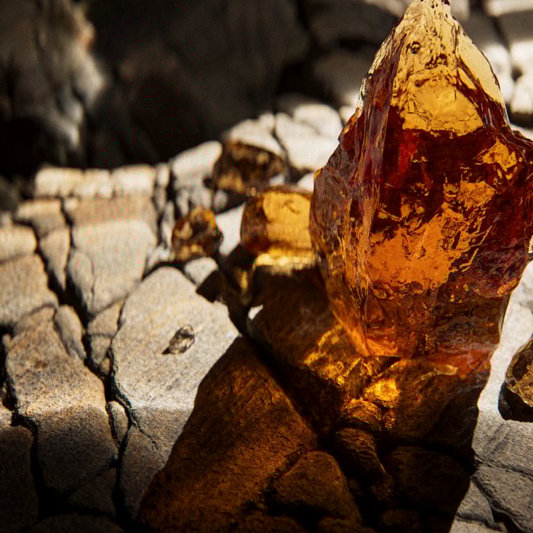 This is an immersion into the sensory world of fragrance, through the textures. Leather, saffron, amber crystals, a burst of citrus, a thread of caramel… each element finds its place, like echoes of the composition. Rough stone brings a grounding, mineral presence. A visual approach that lets the fragrance speak through matter, through instinct, through sensation. Raw and refined, just like the scent.